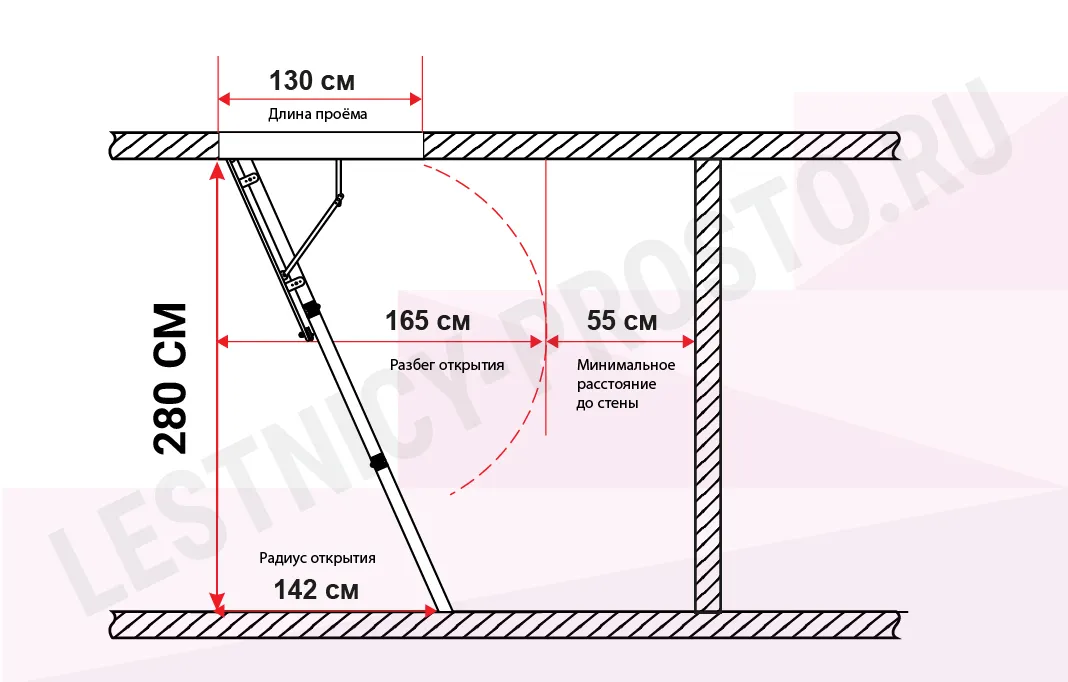 Высоту лестницы можно увеличить с помощью дополнительной секции до 3350 мм. (секция покупается отдельно)