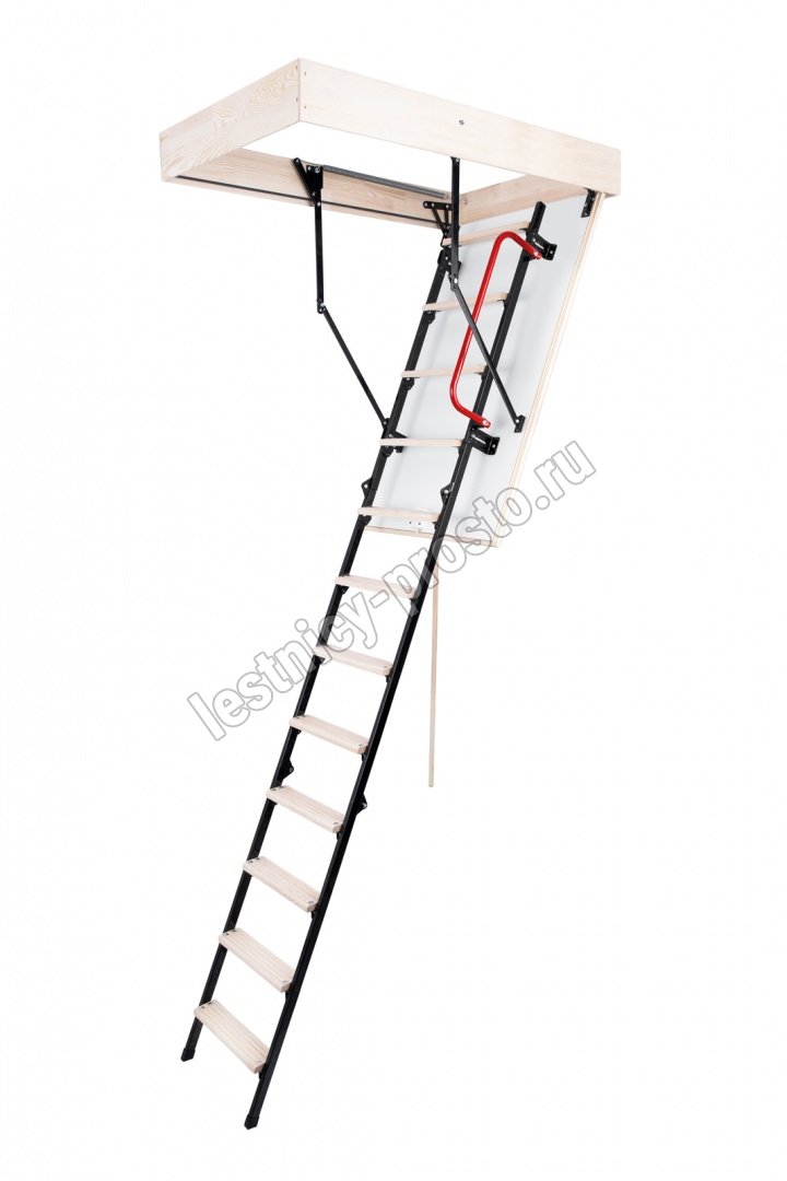 Модель STALLUX идеально подходит для условий, когда чердак утеплен и не требует дополнительной теплоизоляции. Направляющие изготовлены из стали, а ступени - из сосны. Термоизоляционная крышка типа "сэндвич", толщиной 30 мм, утеплена пенопластом, облицована с двух сторон ДВП белого цвета.
