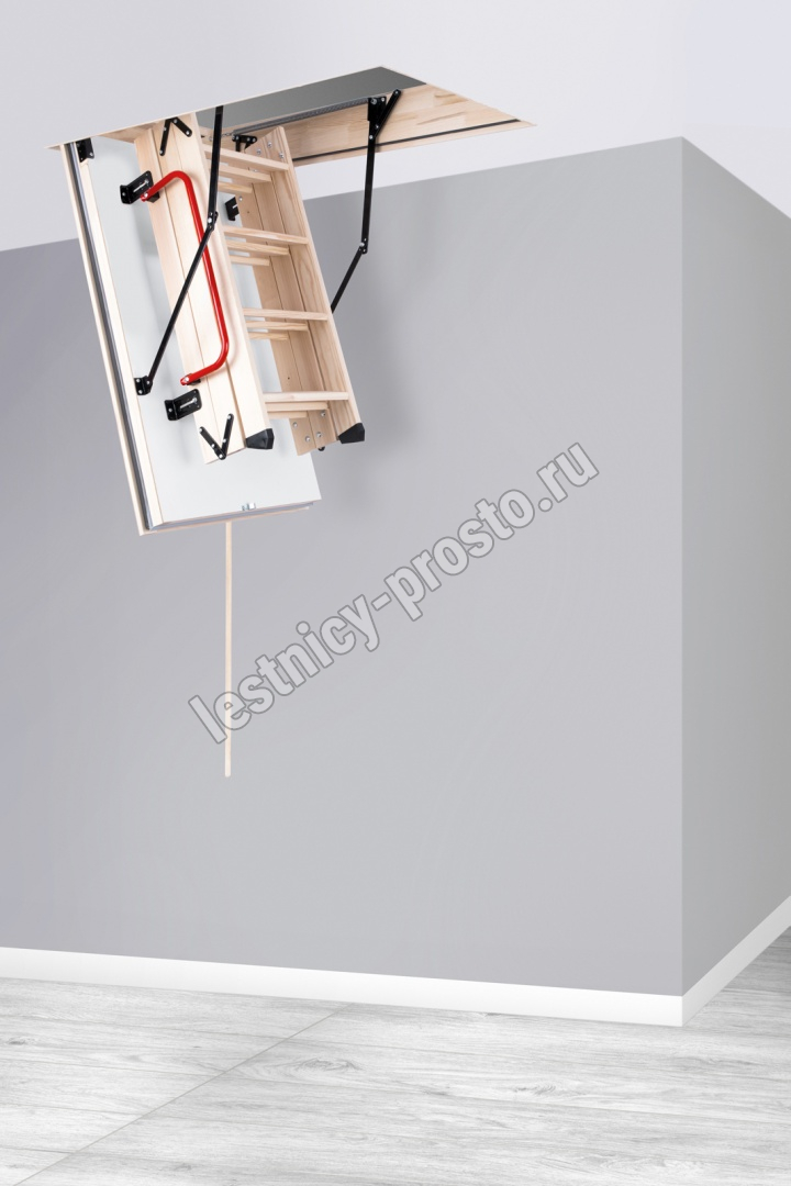 Лестница EI45 POLAR отличается тройным уплотнением, включая одинарное противопожарное уплотнение и люк толщиной 86 мм. Крышка люка утеплена пенопластом, облицована с двух сторон ДСП белого цвета.