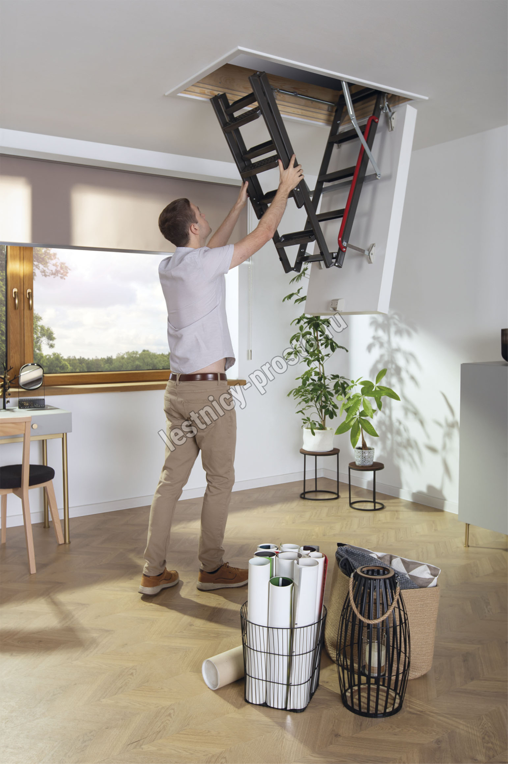 Супертеплоизоляционная металлическая чердачная лестница FAKRO LMT 80×120 см, h-280 см