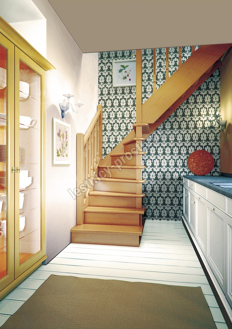 Деревянная межэтажная лестница ЛЕС-02, Лиственница