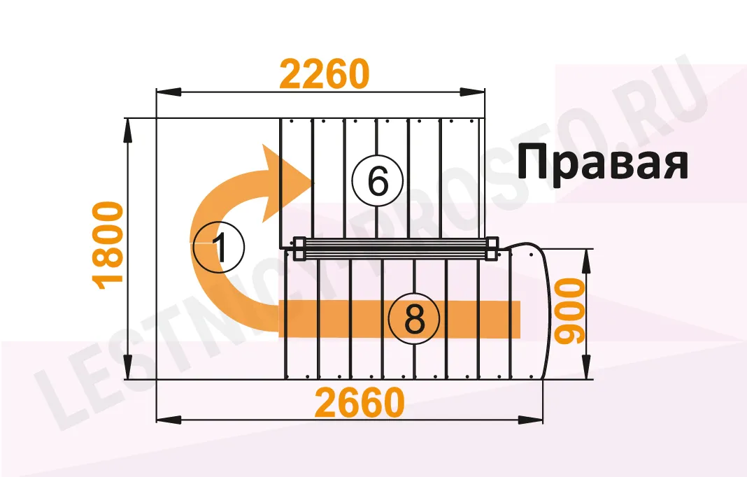Базовый комплект включает в себя деревянные элементы лестницы и ограждения без какого-либо покрытия. Стандартные ограждения можно заменить любыми на ваш вкус (стоимость может измениться).