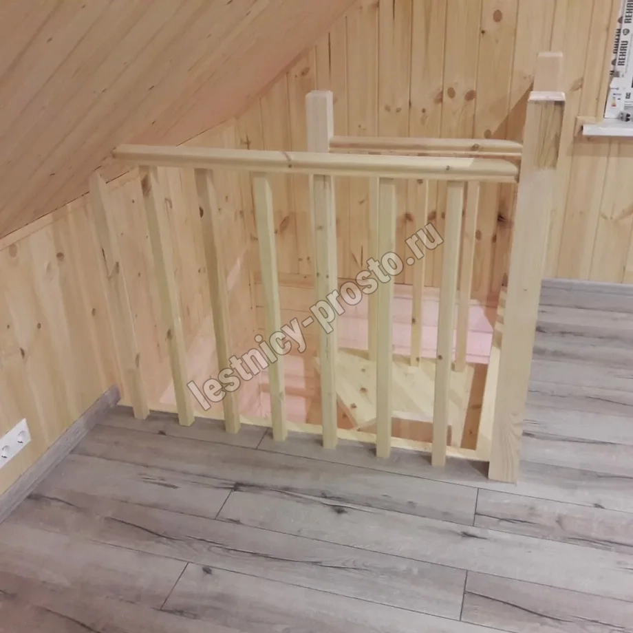 Базовый комплект включает в себя деревянные элементы лестницы и ограждения без какого-либо покрытия.