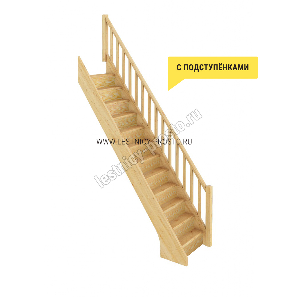 В производстве лестницы ЛС-10м под покраску используется сосна с небольшими изменениями цвета, что практически не влияет на ее механические свойства и почти незаметно при покраске в темные цвета. Базовый комплект включает в себя деревянные элементы лестницы и ограждения без какого-либо покрытия. Ограждение можно установить слева или справа.