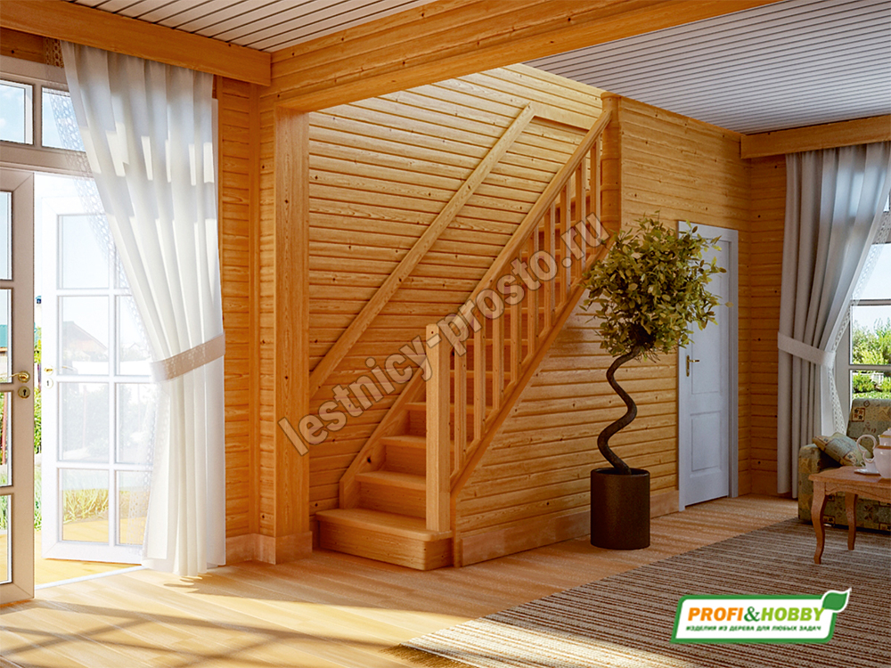 Базовый комплект включает в себя деревянные элементы лестницы и ограждения без какого-либо покрытия.