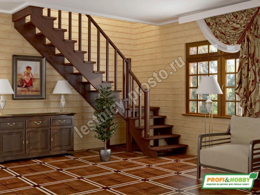 Базовый комплект включает в себя деревянные элементы лестницы и ограждения без какого-либо покрытия.