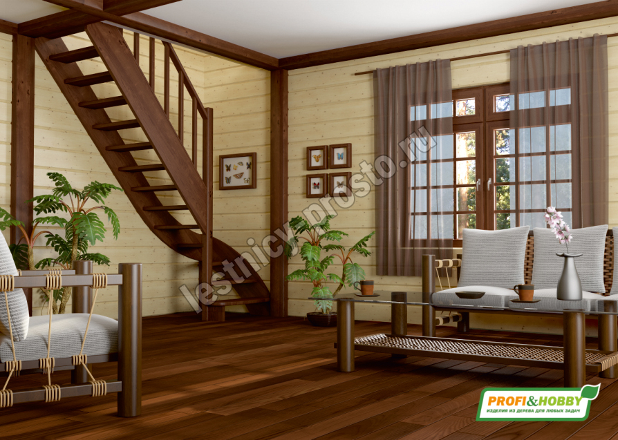 Ступени и поручень лестницы изготовлены из ясеня, остальные элементы из сосны.