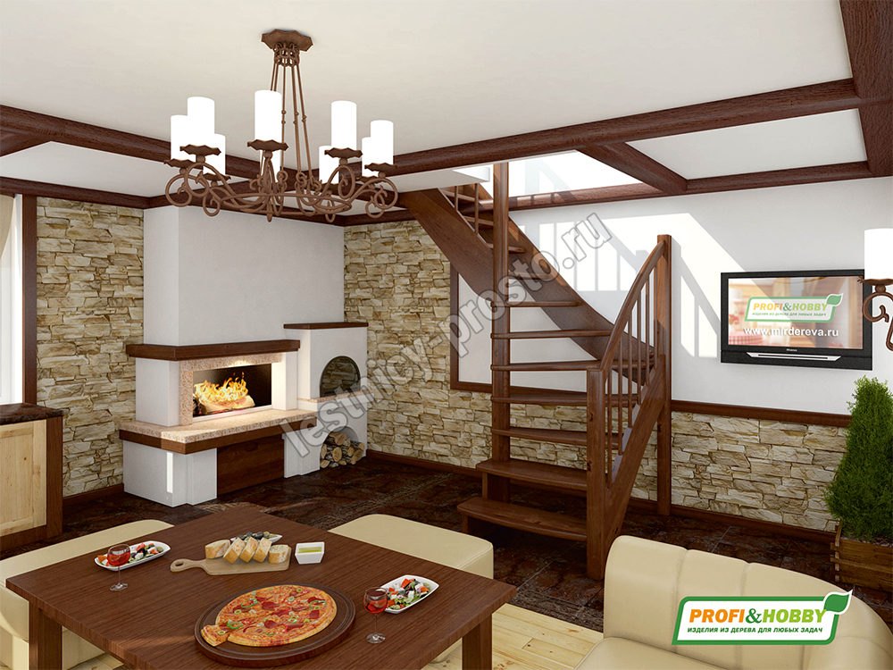 Ступени и поручень лестницы изготовлены из ясеня, остальные элементы из сосны.