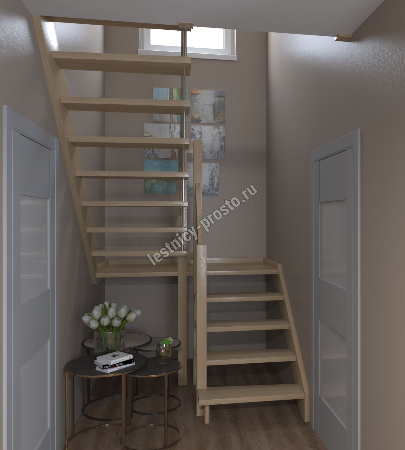 Лестница Prosto Console п-образная забежная, бук h320 см