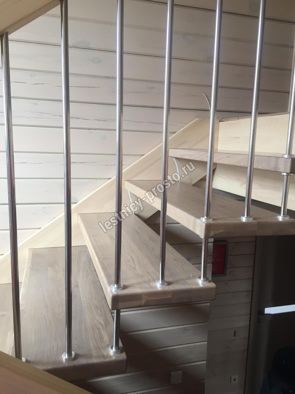 возможна комбинированная лестница: из сосны (ступени бук, ясень, дуб);