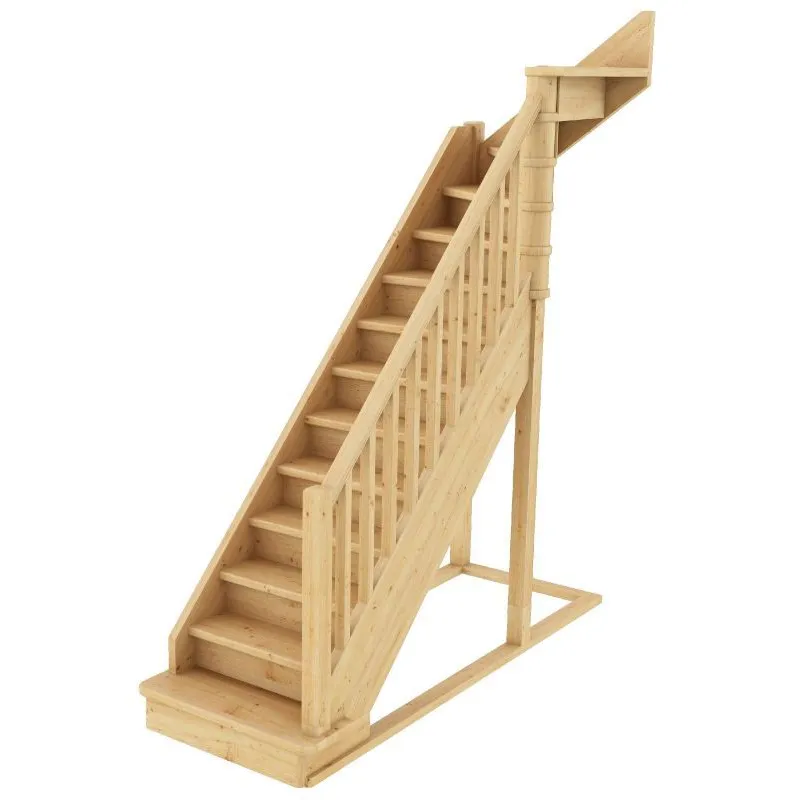 Лестница Универсал изготавливается как с поворотом направо, так и с поворотом налево. Под заказ возможно изготовление лестницы Универсал с высотами этажа: 2300 мм, 2500, мм, 2700 мм, 2900 мм, 3100 мм. В стандартной комплектации лестница поставляется в натуральном цвете, то есть без окрашивания. Первая ступень может быть пригласительной (со скругленными краями или прямой). Базовые ограждения можно заменить на ограждения любого другого вида.