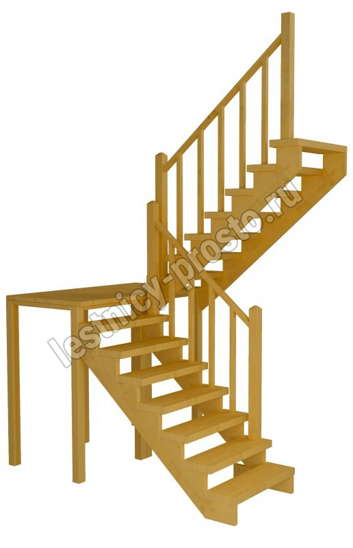 Классическая модель поворотной лестницы раскрывает всю природную красоту натуральных материалов. У лестницы комфортная высота шага, удобный широкий марш и угол подъема. Лестница изготавливается под заказ. Возможны варианты подходящие под разные размеры проёма. Базовое ограждение можно заменить на кованое или точеное. В дополнение можно приобрести бортики, подступени, или мини-подступени. Первую ступень можно заменить на пригласительную - лекальную. Стоимость указана для лестницы без какого-либо покрытия.