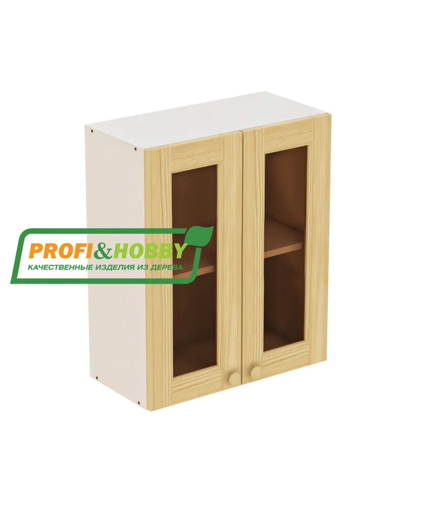 Шкаф навесной 2 двери 600х340х720 + фасад под стекло сосна бесцветный акриловый лак