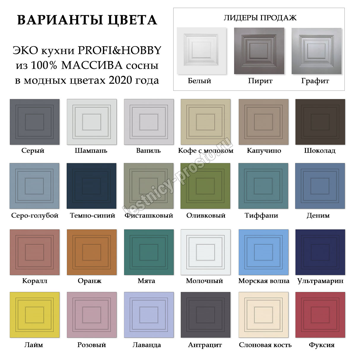 Небольшой кухонный гарнитур из 100% массива сосны шириной всего 2 и высотой 2,14 метра (верхние шкафы 72 см). Один из самых распространенных проектов кухни, который подойдёт для небольшой квартиры, загородного дома, гостиницы или хостела. Цвет на выбор - 27 вариантов (при заказе кухни в нашем интернет магазине просьба указывать название цвета в комментариях).
