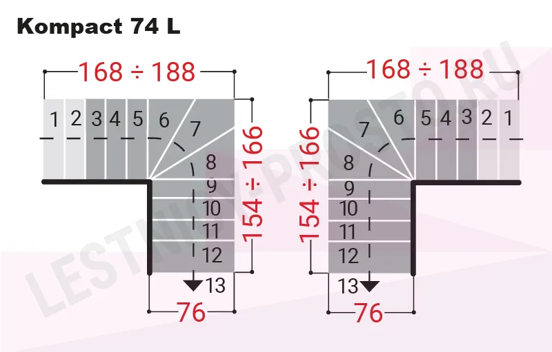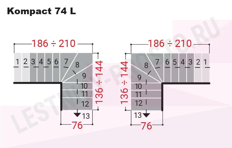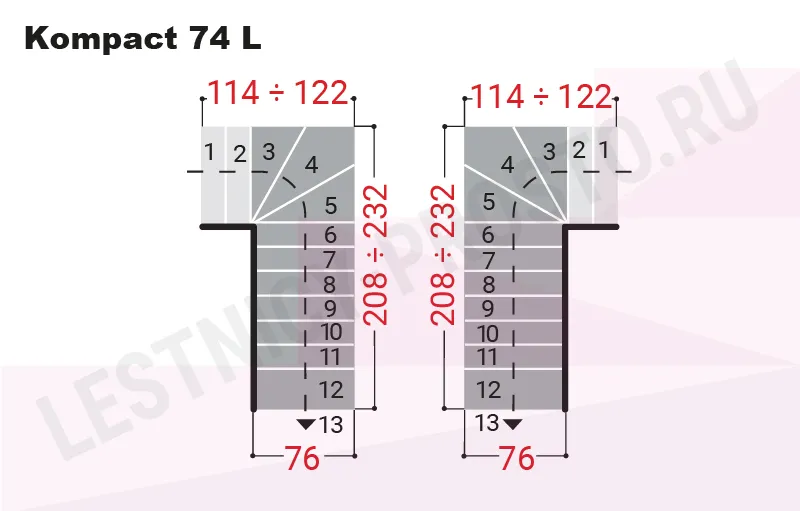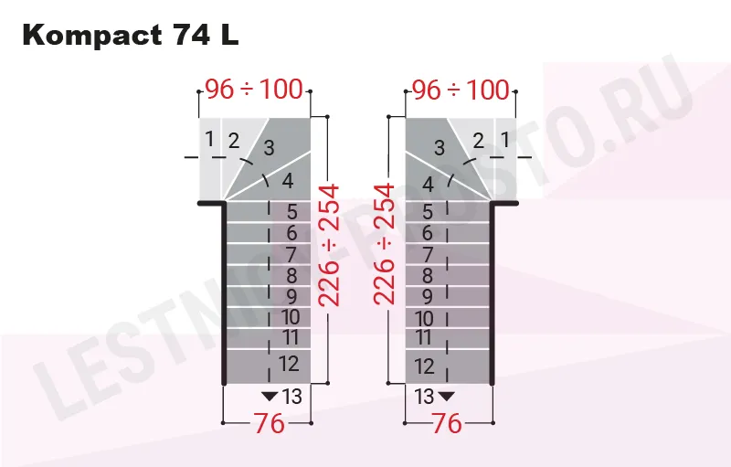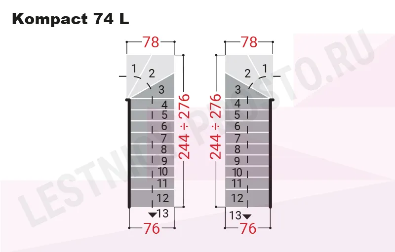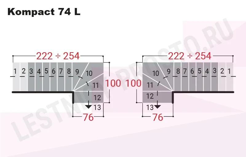Красивая комфортная лестница с уникальной модульной конструкцией, которая позволяет собрать большое число модификаций, подходящих под ваш проём и другие условия помещения. Возможные варианты сборки лестницы смотрите в блоке "чертежи и схемы". При монтаже модульной лестницы KOMPACT, вы можете варьировать высоту шага и проступь, получив точную необходимую высоту и габариты. Лестница KOMPACT возможна в двух вариантах: с шириной марша 740 мм и 890 мм. Ступени выполнены из массива бука и покрыты качественным износостойким лаком. Базовая комплектация позволяет получить лестницу под высоты этажа в диапазоне 2250 - 3030 мм, кроме того, установив дополнительный комплект увеличения высоты, можно поднять высоту лестницы до 3730 мм. Каркас и стойки ограждения выполнены из пластифицированного металла.