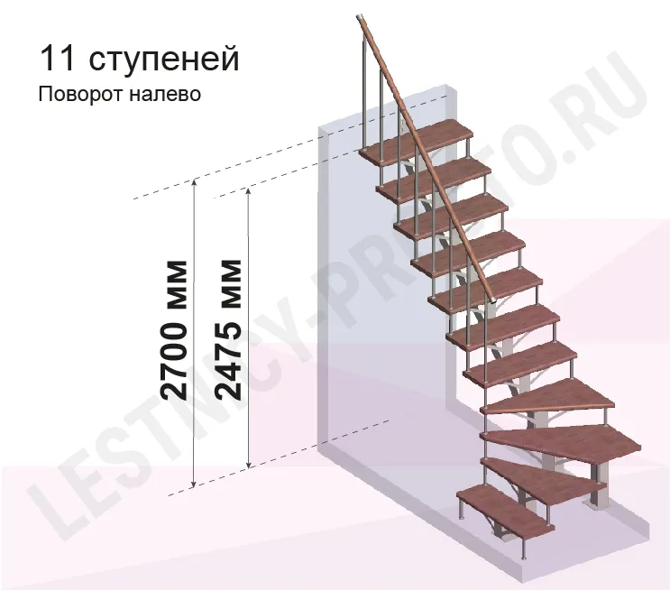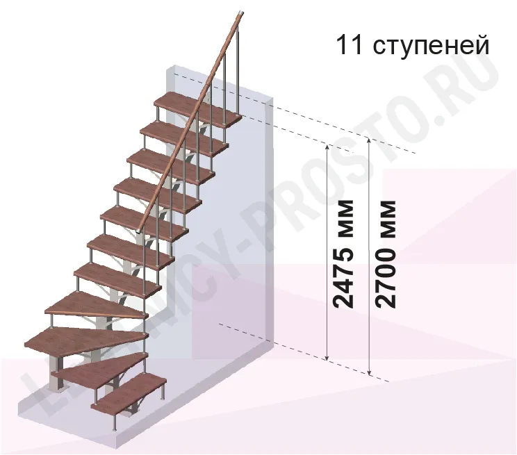 Лестница PROSTO MONO Г-образная h270 см, ступени хвоя