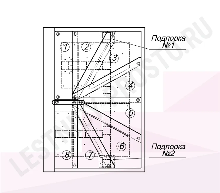 - Верхняя ступень устанавливается вровень с уровнем верхнего этажа