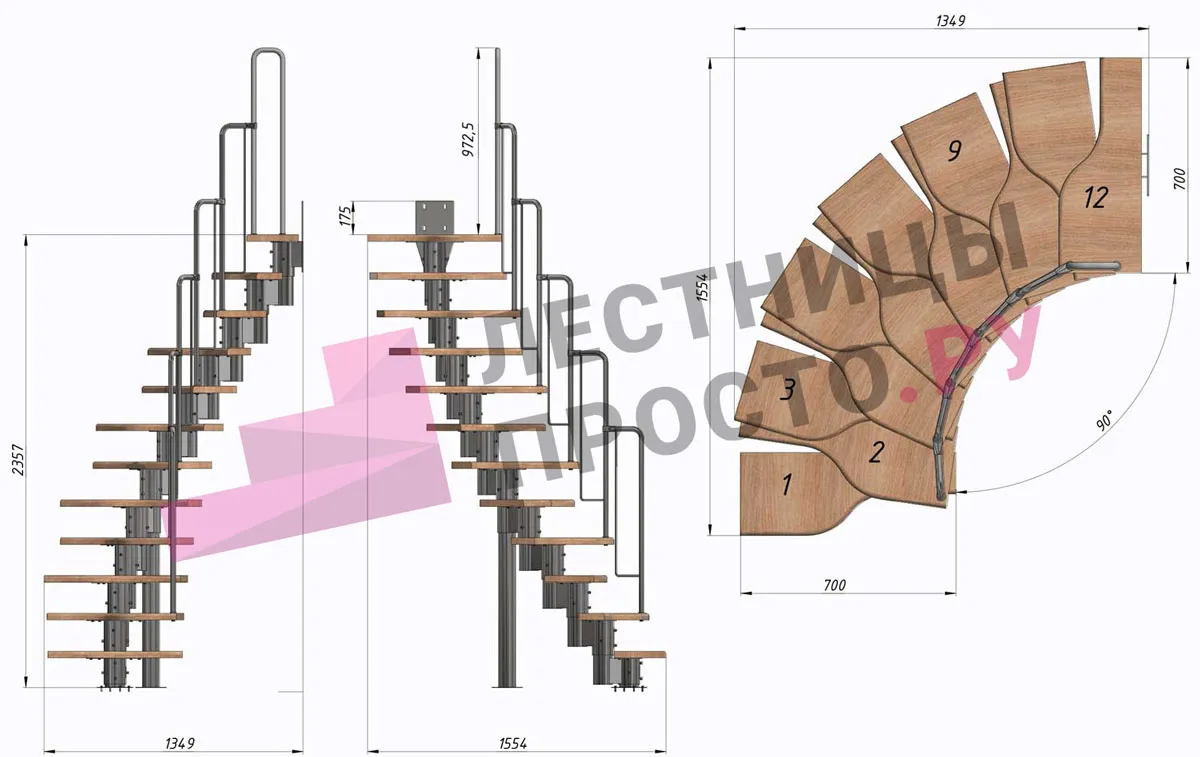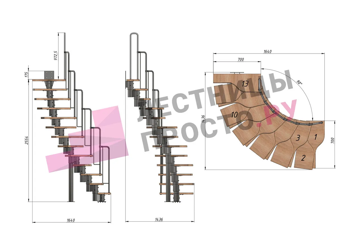 Лестница Prosto Urban Black гусиный шаг 700 мм/Ступени из берёзы мультиплекс