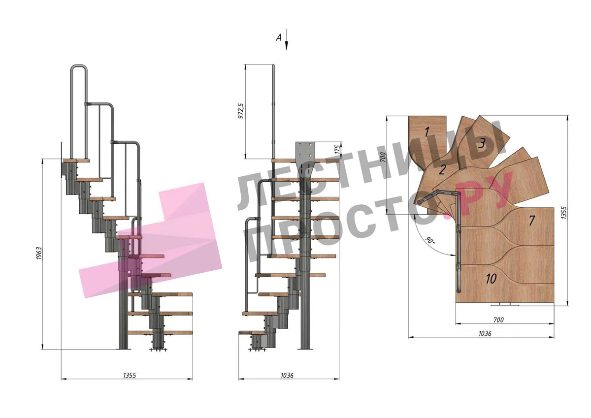 - Регулируемый по высоте в пределах 180-240 мм модуль. Большой диаметр и толщина металла деталей обеспечивают жесткость и прочность конструкции. Регулировка каждого модуля по высоте позволяет легко приспособить лестницу под ваше помещение.