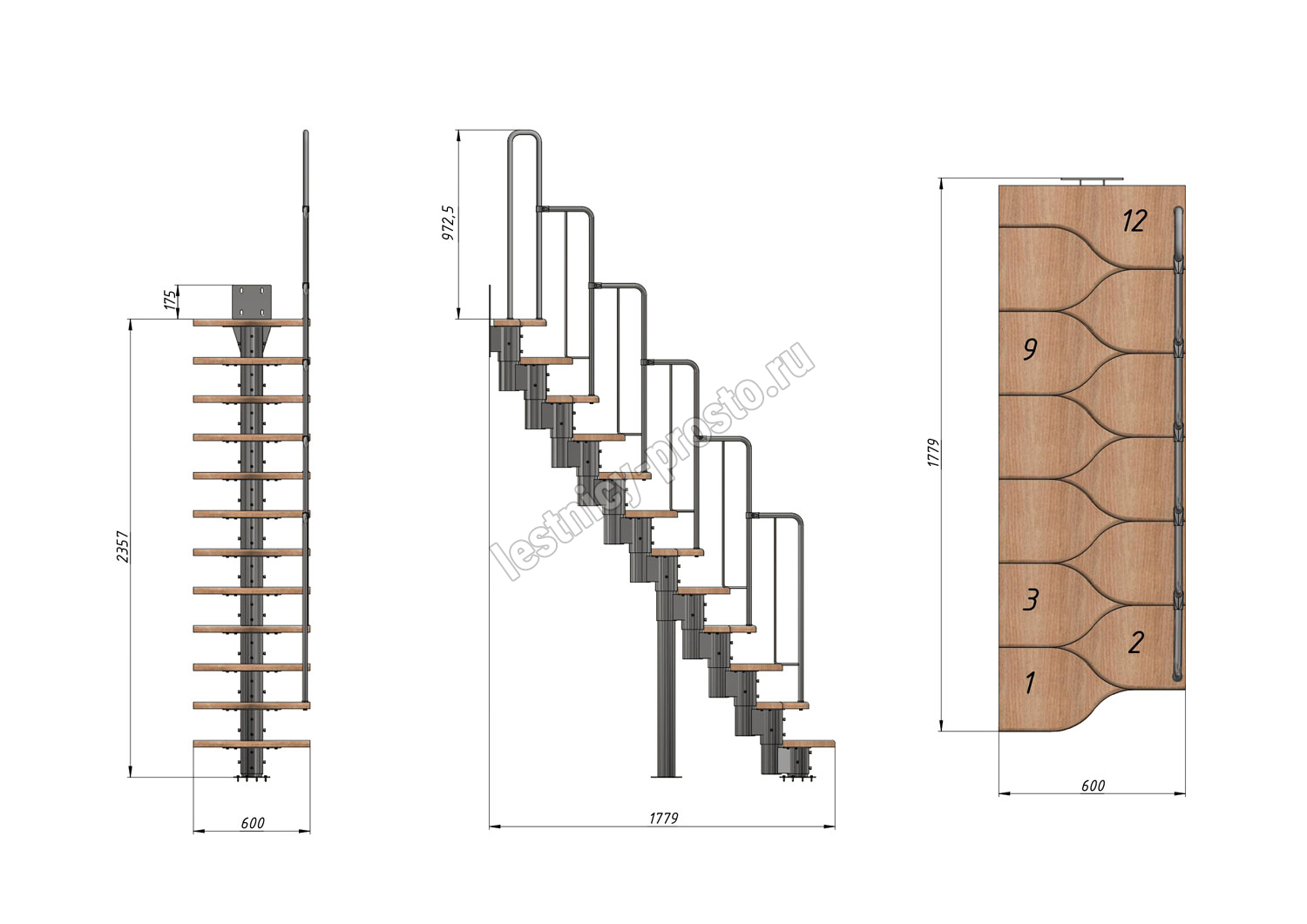Высота лестницы 2160 - 3120 (12 ступеней) мм