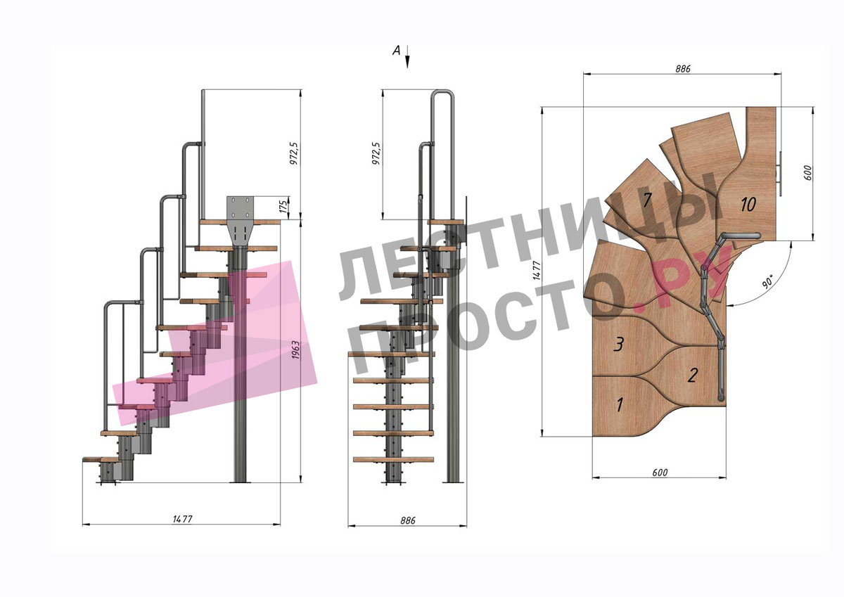 | Лестница Prosto Urban White гусиный шаг 600 мм, h180-264 см (10 ступеней), бук |