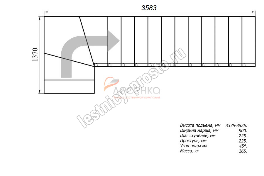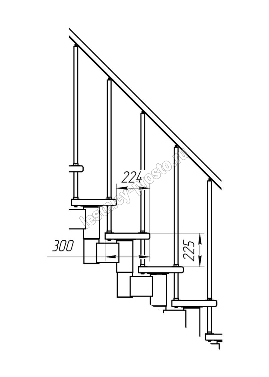 Модульная лестница Фаворит 225 3375-3525, Серый, Сосна, Нержавеющая сталь