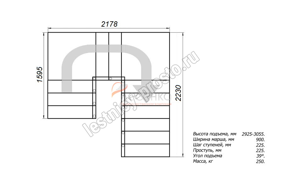 Модульная лестница Комфорт 225 2925-3055, Черный, Лиственница, Крашеная