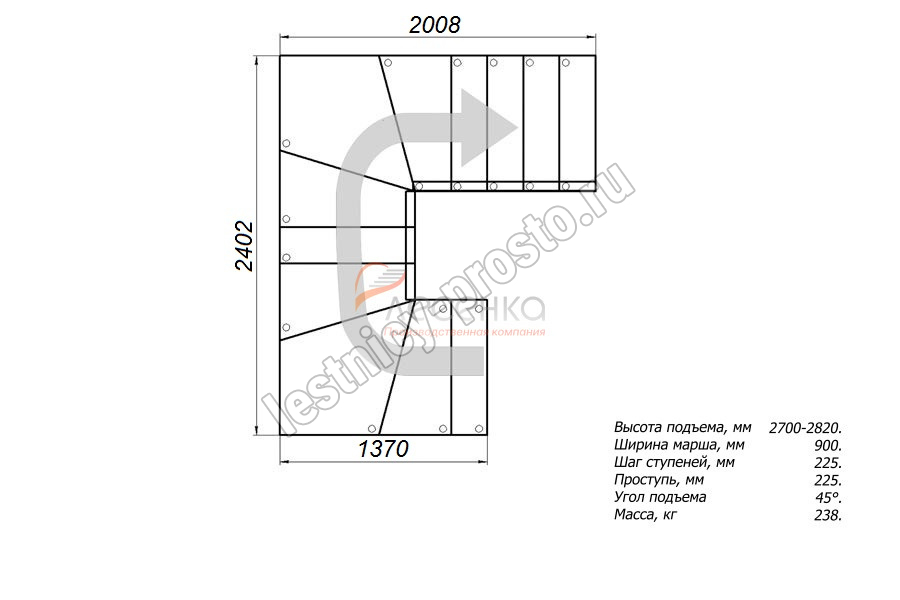 Модульная лестница Спринт 225 2700-2820, Черный, Лиственница, Нержавеющая сталь
