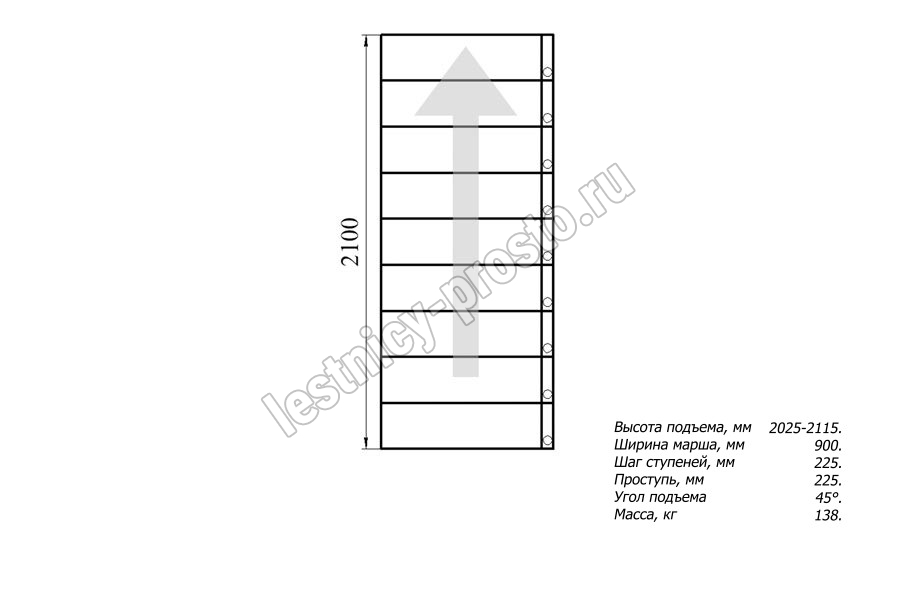 Модульная лестница Стандарт 2025-2115, Черный, Лиственница, Нержавеющая сталь