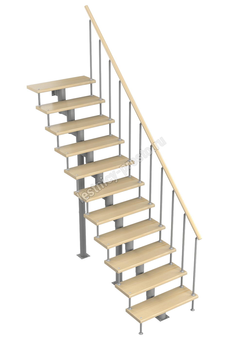 Модульная лестница Стандарт 2475-2585, Серый, Бук, Нержавеющая сталь