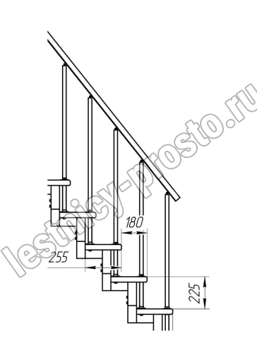 Модульная малогабаритная лестница Эксклюзив 2025-2250, Черный, Сосна, Крашеная