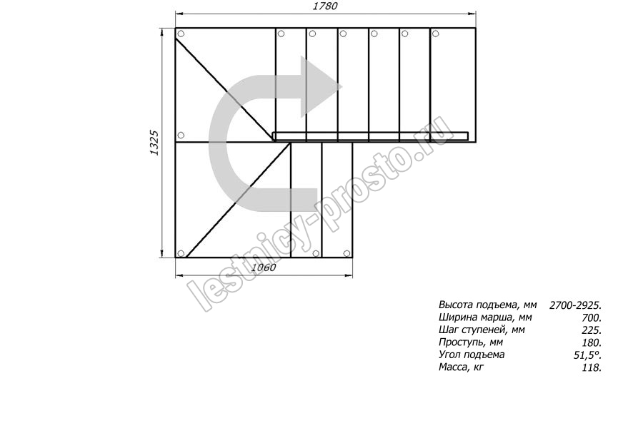 Модульная малогабаритная лестница Эксклюзив 2700-2925, Серый, Бук, Нержавеющая сталь
