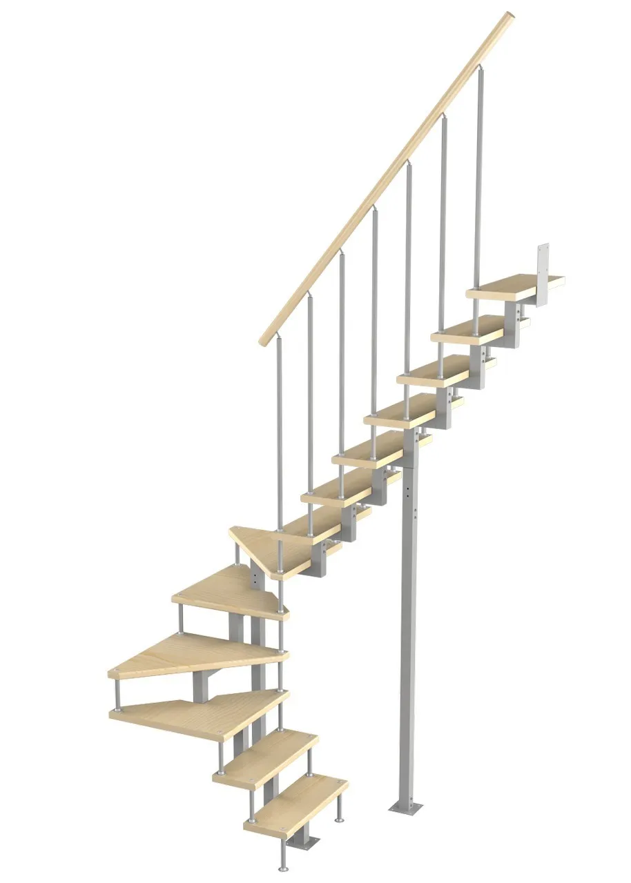 Модульная малогабаритная лестница Эксклюзив 2925-3150, Серый, Сосна, Нержавеющая сталь