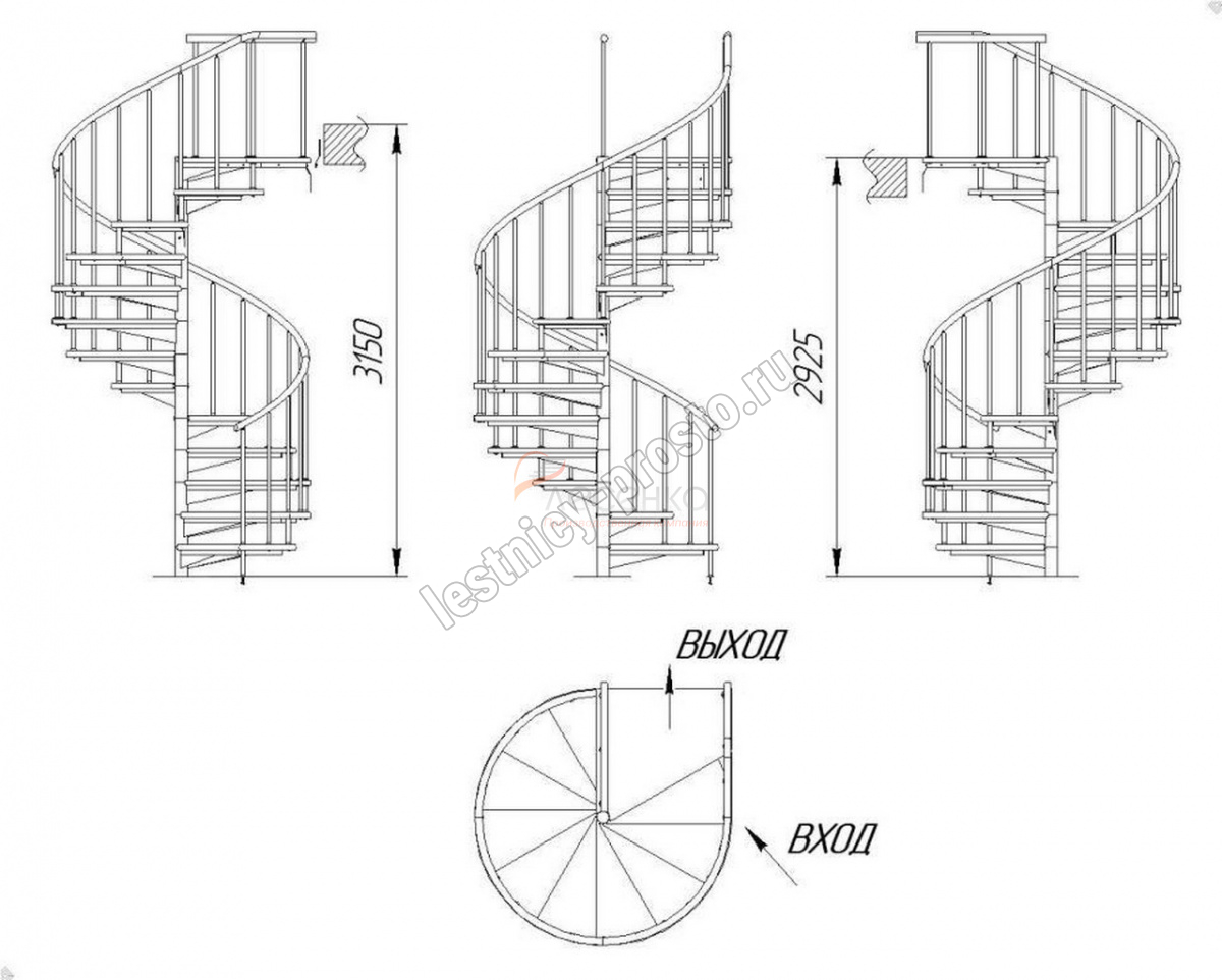Винтовая лестница ЛЕС-1,8 высота 2925-3150, Серый, Сосна