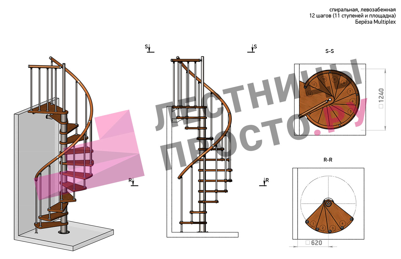 Решение об ориентации поворота лестницы принимается при сборке (комплект собирается и в правозабежную, и в левозабежную лестницу)