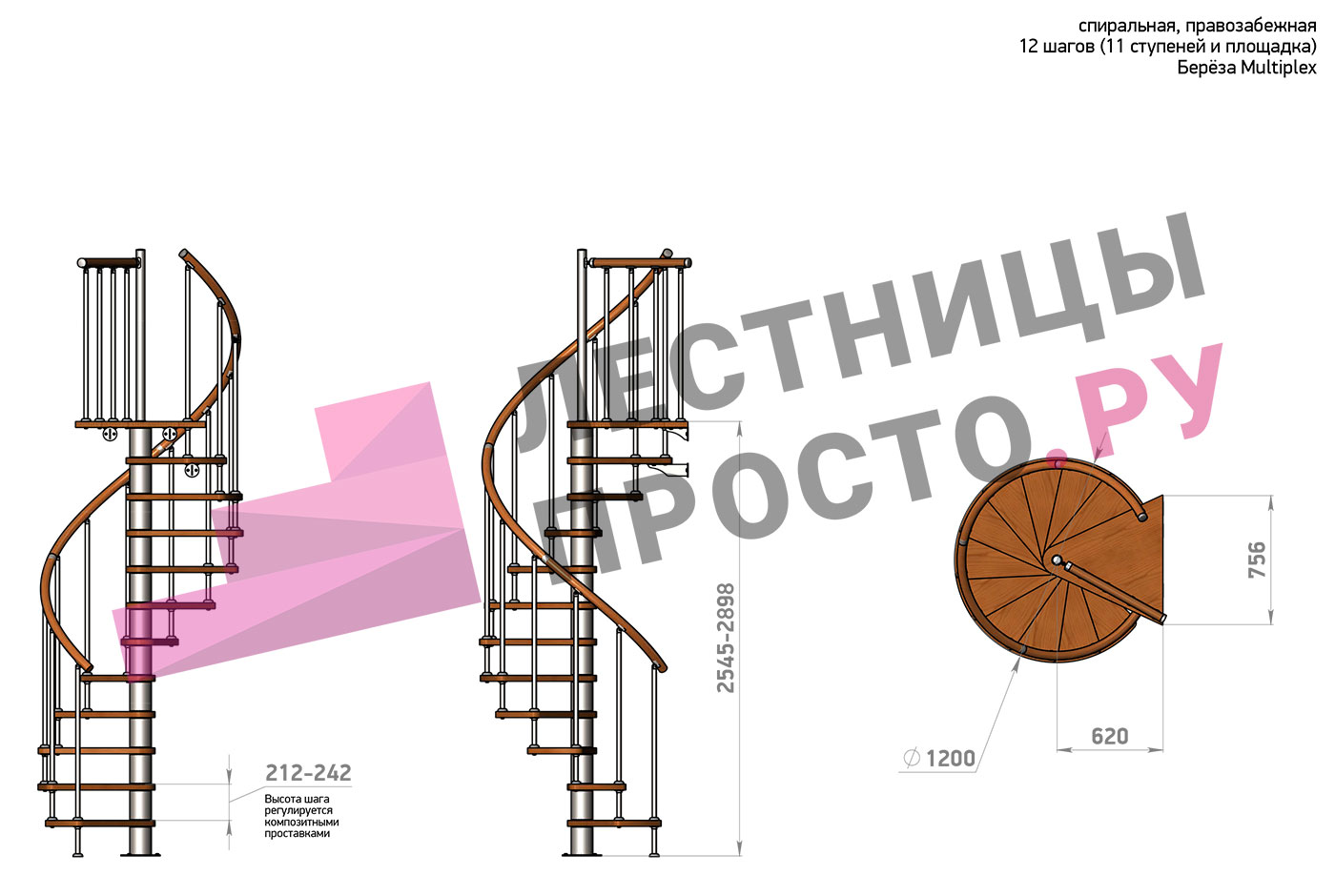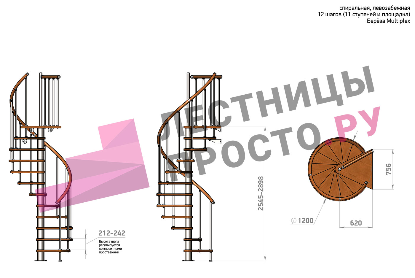 Винтовая лестница Prosto Spiral Black D120см, h254.5-289.8 см