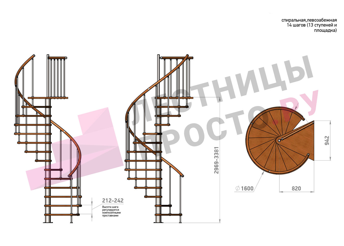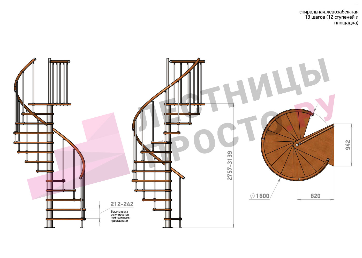 Винтовая лестница Prosto Spiral Black/Высота 2757 - 3139 мм