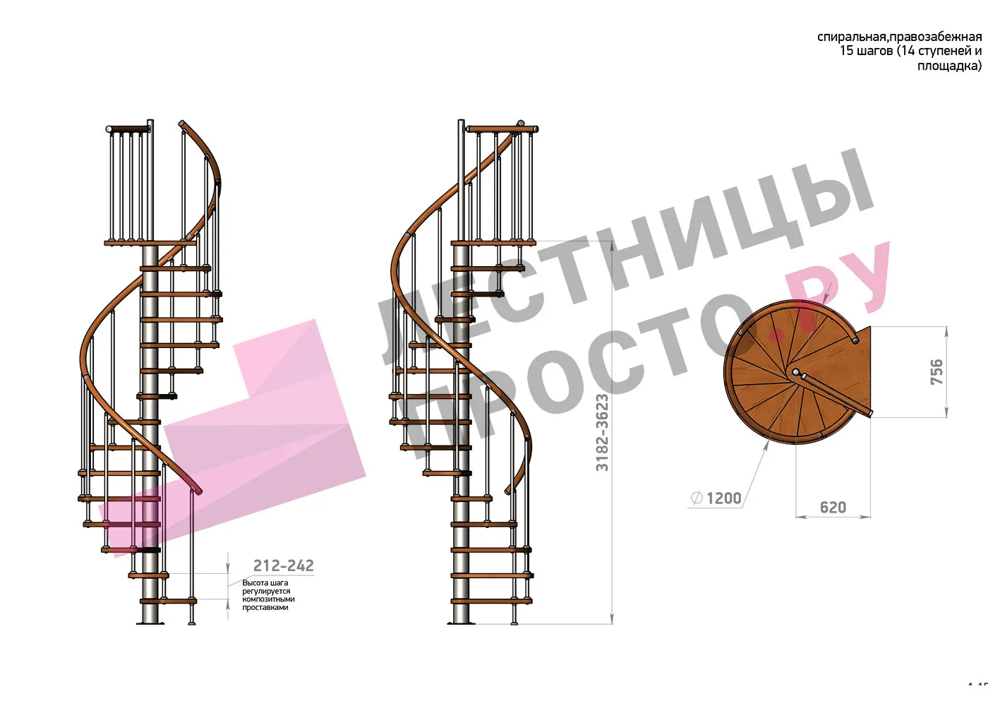 | Винтовая лестница Prosto Spiral Black D120см, h318.2-362.3 см |