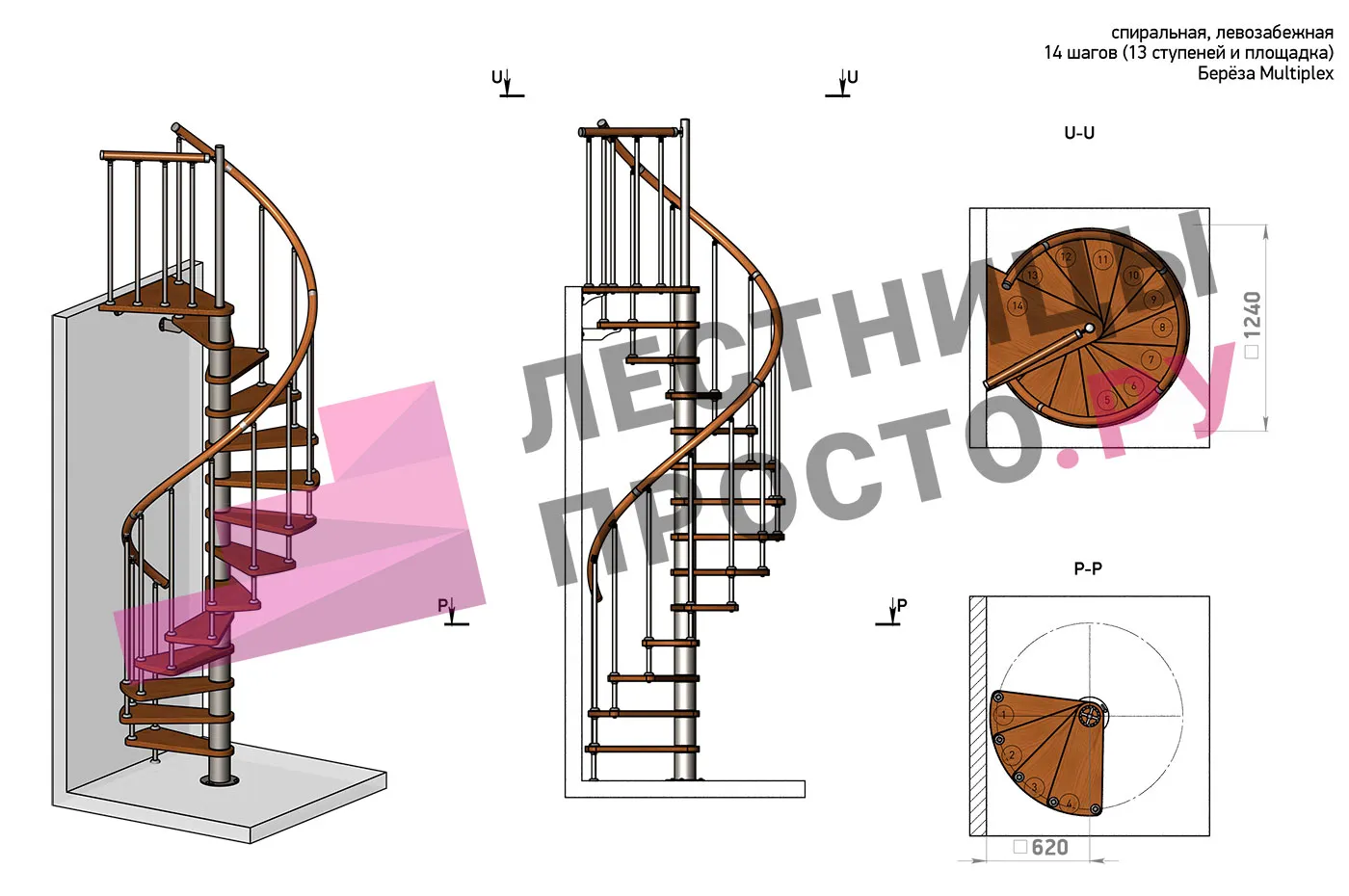 Винтовая лестница Prosto Spiral White D120см, h296.9-338.1 см