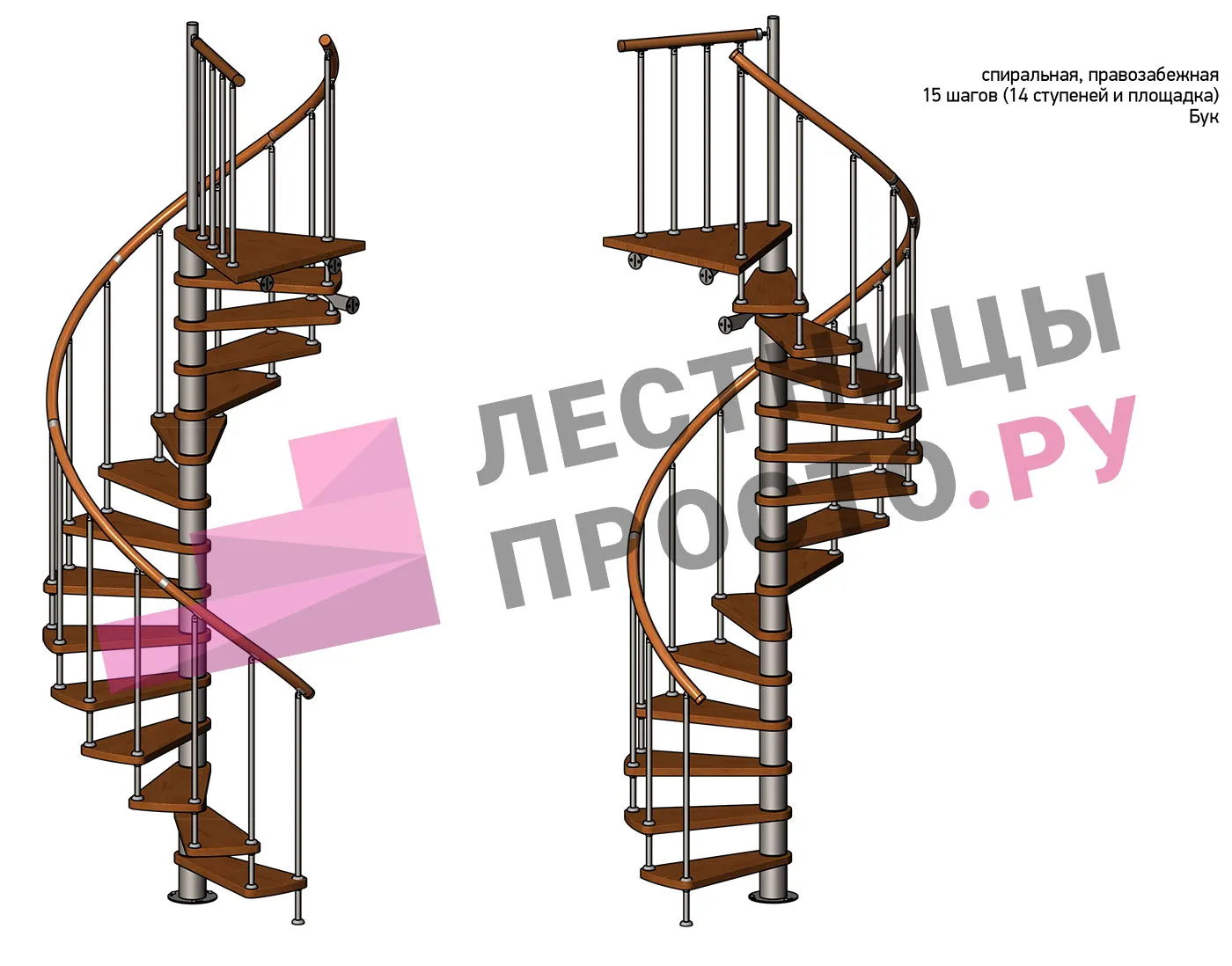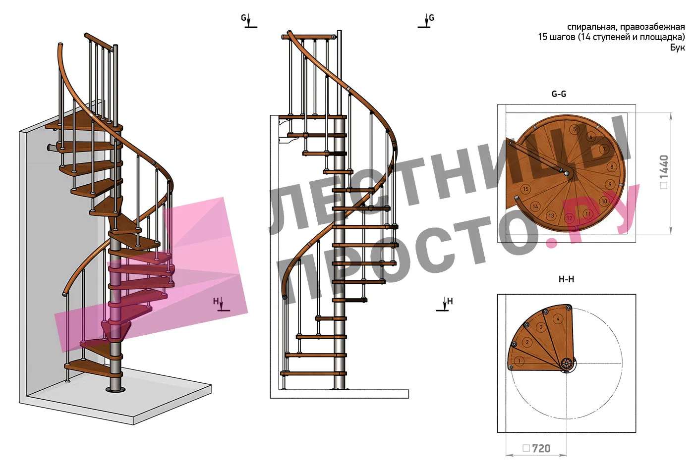 Правая, d=140см, 14 ступеней + площадка