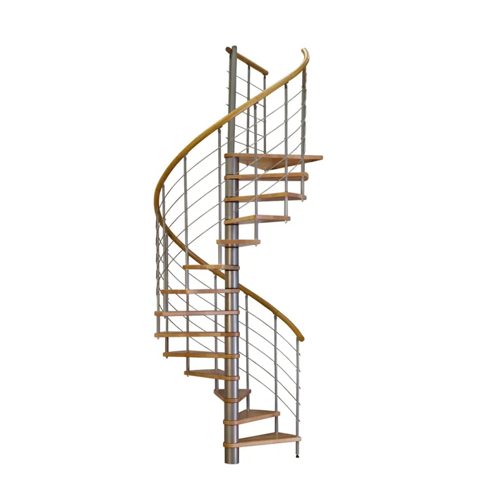 Винтовая лестница SPIRAL WOOD d160 см, серебро, лакированный бук
