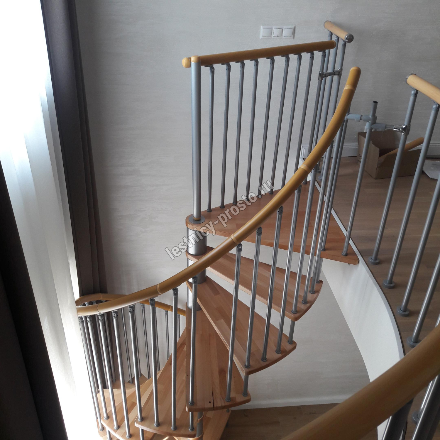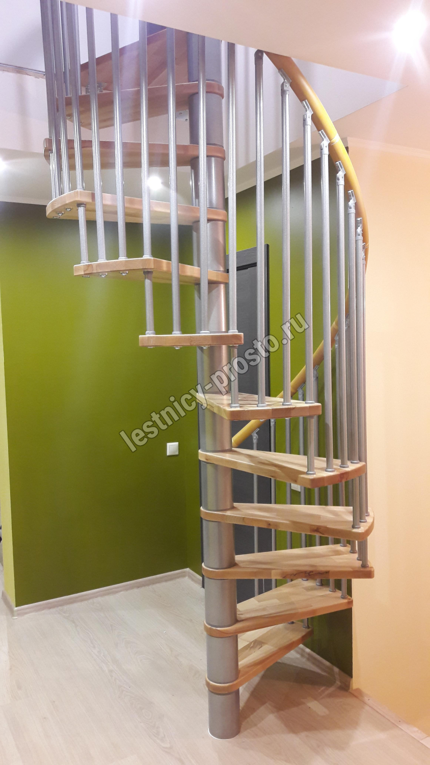 Винтовая лестница SPIRAL WOOD d120 см. серебро, лакированный дуб