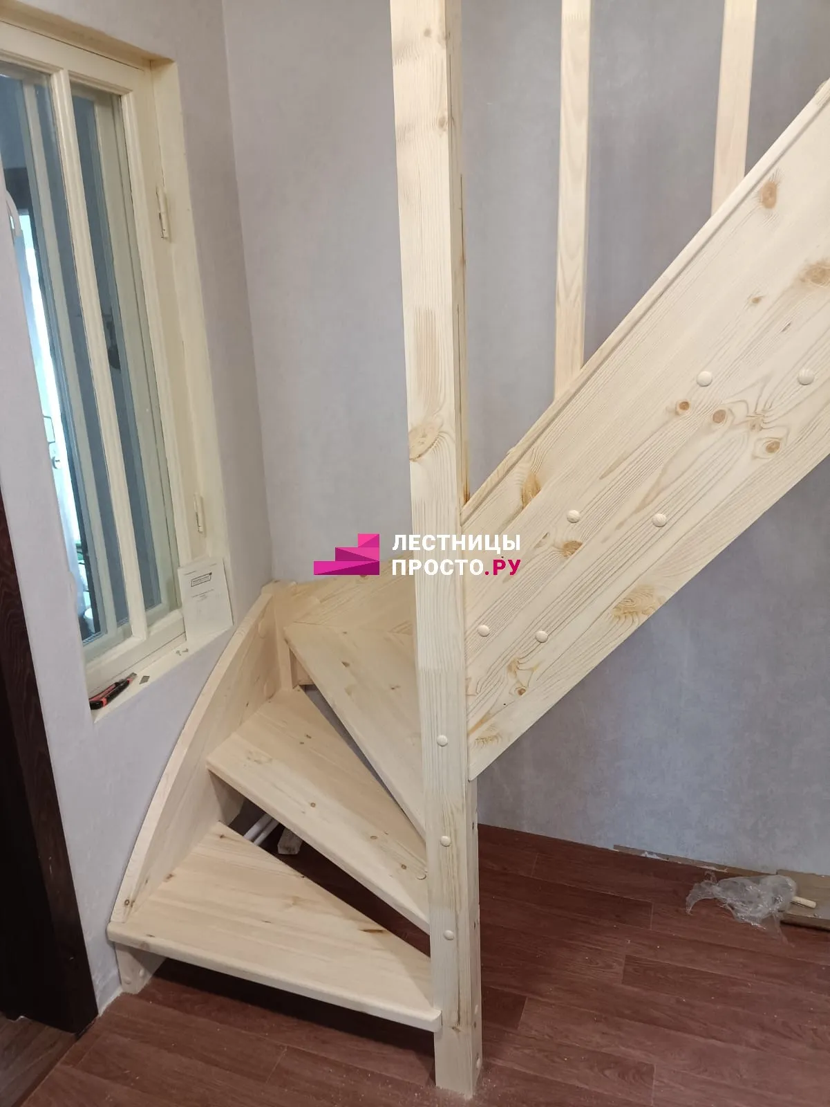 Лестница LP из сосны на второй этаж с поворотом на 180 градусов