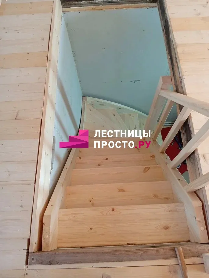 Г-образная лестница из сосны для частного дома ЛС-07/4