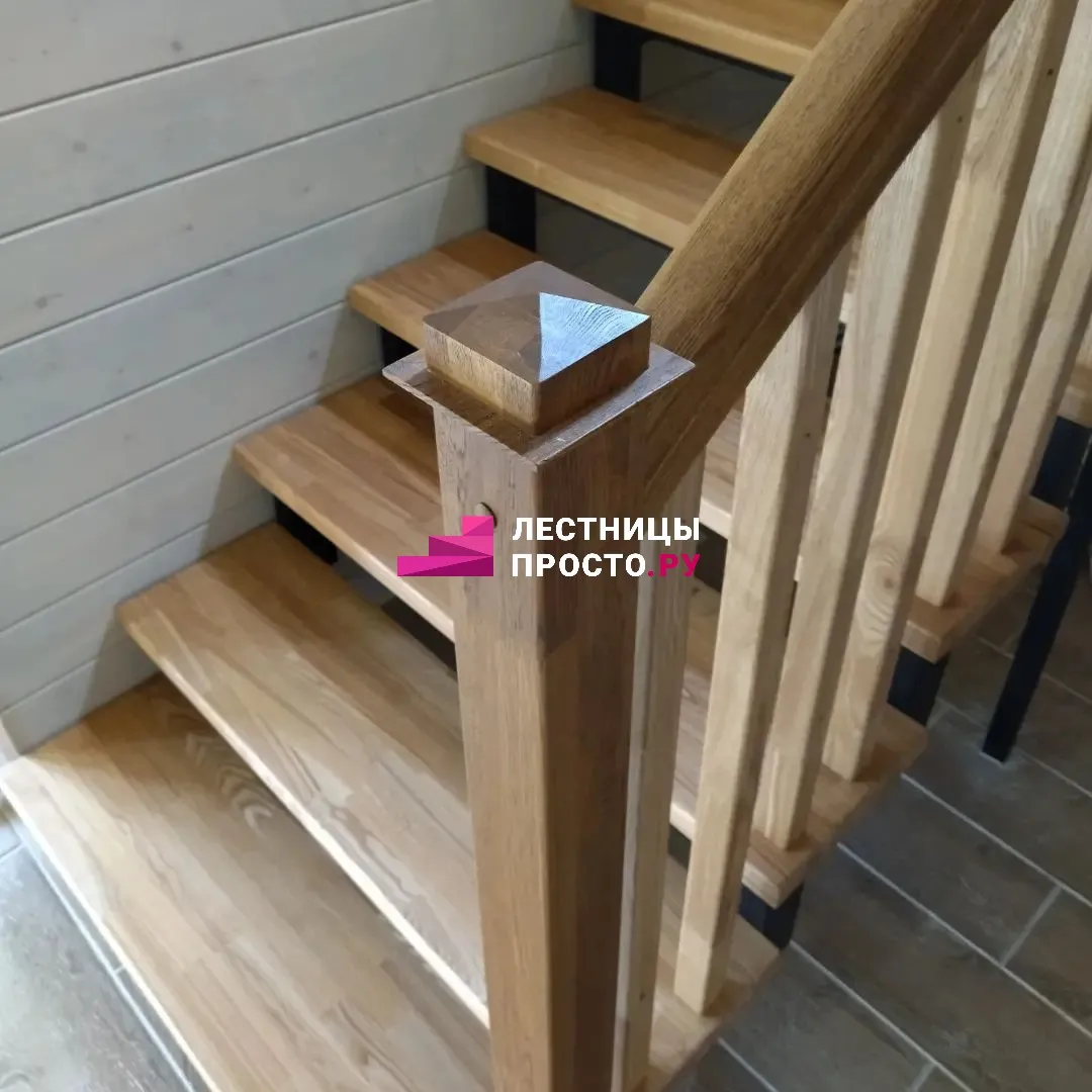 Металлическая лестница с дубовыми ступенями и ограждением LP-1-20